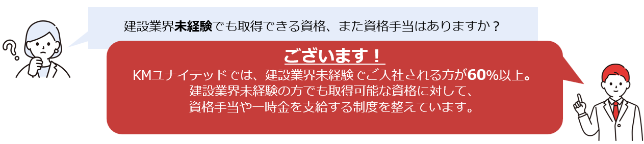 建設業界未経験でご入社される方へ向けて、資格手当の制度を整えています。